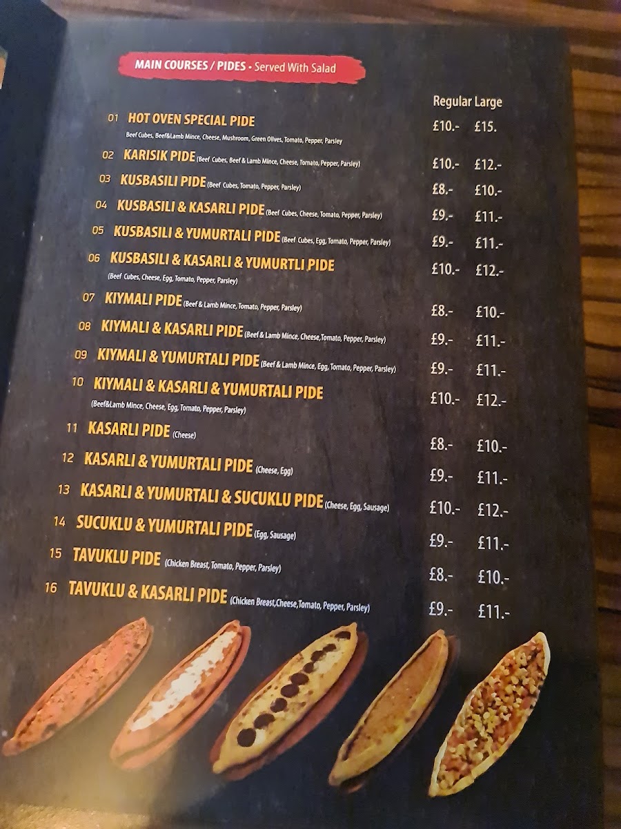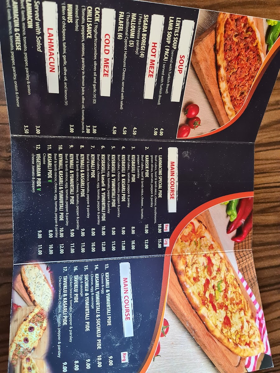 For starters, the Lahmacun is a must-try, with options like Lahmacun & Cheese and the classic Lahmacun. These flavorful flatbreads are ideal for those looking for a light yet satisfying meal. If you're in the mood for a heartier dish, the Main Course section has an excellent selection, such as the Large Lahmacino Special Pide and the more compact Regular Lahmacino Special Pide, as well as other varieties like the Regular Karisik Pide and Large Karisik Pide.